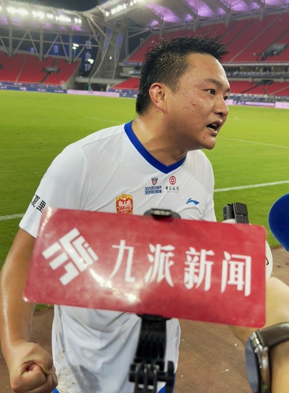 接受九派新闻提问时,他特意向媒体介绍了球队守门员,“虽然你们看他可能年纪大了些,但他是我们队最稳的人,以前也有职业经历。”